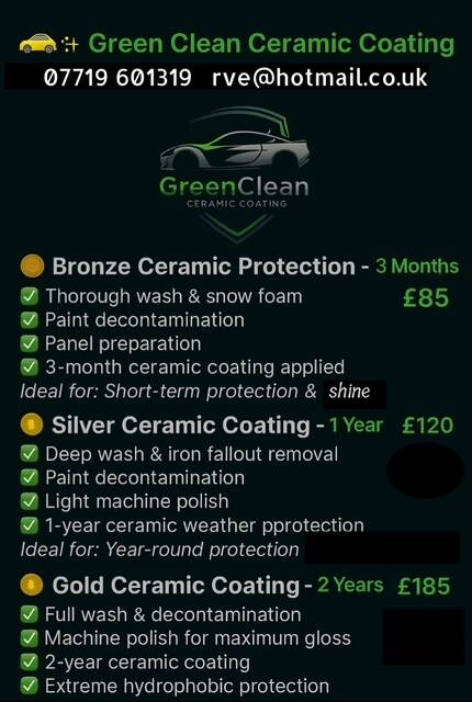Discover the transformative power of ceramic coating from Green Clean Valeting. Our expert service provides unparalleled protection and a lasting shine, keeping your vehicle looking its best for years to come. Experience the difference a professional ceramic coating can make.